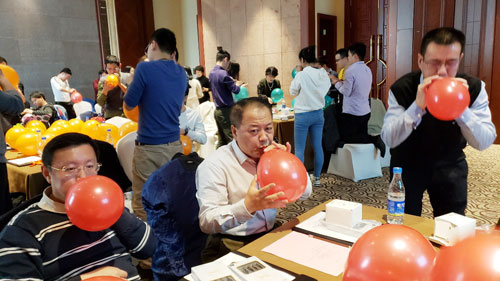 會議結(jié)束后,進行了集體握力比賽、團隊平衡測試比拼、集體吹氣球比拼活動等聯(lián)誼活動,各小組積極踴躍參與,在活動中融入了康復評測內(nèi)容,活動現(xiàn)場熱鬧非凡。