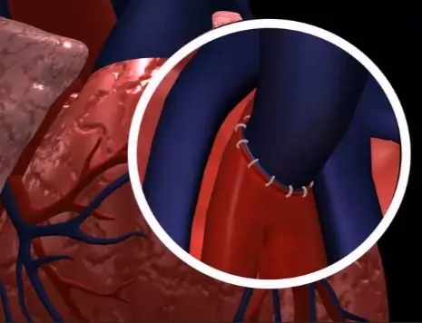 5.將隱靜脈縫合在主動(dòng)脈和冠狀動(dòng)脈阻塞部位遠(yuǎn)端